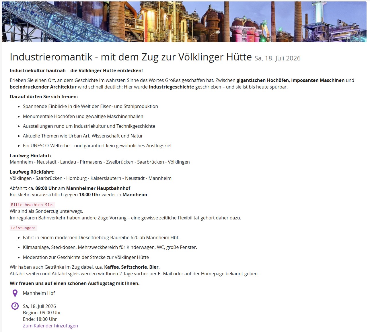 - Kulturelle Sonderfahrten durchführen, vor allen die Region auf Schienenwegen zu erschließen